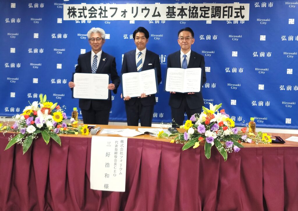 株式会社フォリウム(本社:東京都港区、代表取締役会長CEO:三好浩和、以下フォリウム)は、これに先立ち、青森県および弘前市と立地協定を締結し、調印式を執り行いました。