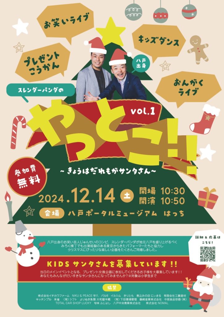 フォリウムは、12月14日に八戸ポータルミュージアムはっちにて開催されるイベント「やっとこ!!〜今日は誰もがサンタさん〜」に協賛しています。